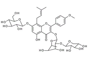 | IUPAC Name | 3-[(2S,3R,4R,5R,6S)-4,5-dihydroxy-6-methyl-3-[(2S,3R,4S,5R)-3,4,5-trihydroxyoxan-2-yl]oxyoxan-2-yl]oxy-5-hydroxy-2-(4-methoxyphenyl)-8-(3-methylbut-2-enyl)-7-[(2S,3R,4S,5S,6R)-3,4,5-trihydroxy-6-(hydroxymethyl)oxan-2-yl]oxychromen-4-one |