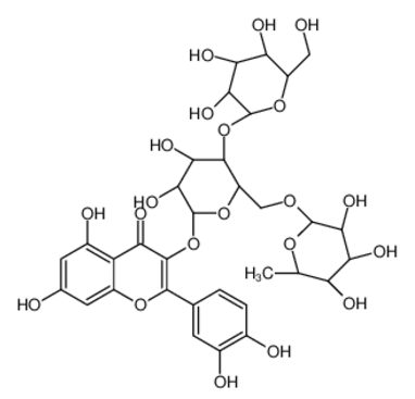 | IUPAC Name | 2-(3,4-dihydroxyphenyl)-3-[(2S,3R,4R,5S,6R)-3,4-dihydroxy-5-[(2R,3R,4S,5S,6R)-3,4,5-trihydroxy-6-(hydroxymethyl)oxan-2-yl]oxy-6-[[(2R,3R,4R,5R,6S)-3,4,5-trihydroxy-6-methyloxan-2-yl]oxymethyl]oxan-2-yl]oxy-5,7-dihydroxychromen-4-one |