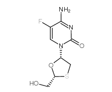 Literature References: Reverse transcriptase inhibitor; nucleoside analog structurally related to lamivudine, q.v. Prepn: D. C. Liotta et al., WO 9214743 (1992 to Emory University); G. Dionne, US 5538975 (1996 to BioChem Pharma, Inc.); L. S. Jeong et al., J. Med. Chem. 36, 181 (1993). Absolute configuration: P. van Roey et al., Antiviral Chem. Chemother. 4, 369 (1993). HPLC-NMR determn of urinary metabolites: J. P. Shockcor et al., Xenobiotica 26, 189 (1996). Comparative efficacy of enantiomers vs HIV: R. F. Schinazi et al., Antimicrob. Agents Chemother. 36, 2423 (1992). Pharmacokinetics: L. W. Frick et al., ibid. 38, 2722 (1994). Mechanism of action study: J. Y. Feng et al., FASEB J. 13, 1511 (1999). Clinical study in combination with didanosine and efavirenz: J.-M. Molina et al., J. Infect. Dis. 182, 599 (2000). Review: P. Cahn, Expert Opin. Invest. Drugs 13, 55-68 (2004).