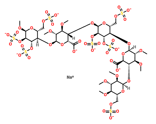CAS Name: Methyl O-2,3,4-tri-O-methyl-6-O-sulfo-a-D-glucopyranosyl-(1?4)-O-2,3-di-O-methyl-b-D-glucopyranuronosyl-(1?4)-O-2,3,6-tri-O-sulfo-a-D-glucopyranosyl-(1?4)-O-2,3-di-O-methyl-a-L-idopyranuronosyl-(1?4)-a-D-glucopyranoside 2,3,6-tris(hydrogen sulfate) nonasodium salt