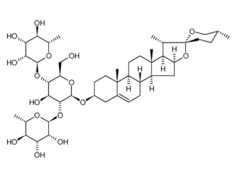 CAS Name: (25R)-Spirost-5-en-3b-yl O-6-deoxy-a-L-mannopyranosyl-(1?2)-O-[6-deoxy-a-L-mannopyranosyl-(1?4)]-b-D-glucopyranoside