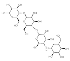 CAS Name: O-4,6-Dideoxy-4-[[[1S-(1a,4a,5b,6a)]-4,5,6-trihydroxy-3-(hydroxymethyl)-2-cyclohexen-1-yl]amino]-a-D-glucopyranosyl-(1?4)-O-a-D-glucopyranosyl-(1?4)-D-glucose