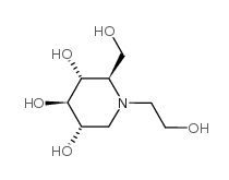 Additional Names: N-(2-hydroxyethyl)moranoline; (2R,3R,4R,5S)-1-(2-hydroxyethyl)-2-(hydroxymethyl)-3,4,5-piperidinetriol; N-(b-hydroxyethyl)-1-deoxynojirimycin