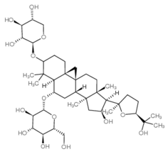 | IUPAC Name | (2R,3R,4S,5S,6R)-2-[[(1S,3R,6S,8R,9S,11S,12S,14S,15R,16R)-14-hydroxy-15-[(2S,5R)-5-(2-hydroxypropan-2-yl)-2-methyloxolan-2-yl]-7,7,12,16-tetramethyl-6-[(2S,3R,4S,5R)-3,4,5-trihydroxyoxan-2-yl]oxy-9-pentacyclo[9.7.0.01,3.03,8.012,16]octadecanyl]oxy]-6-(hydroxymethyl)oxane-3,4,5-triol |